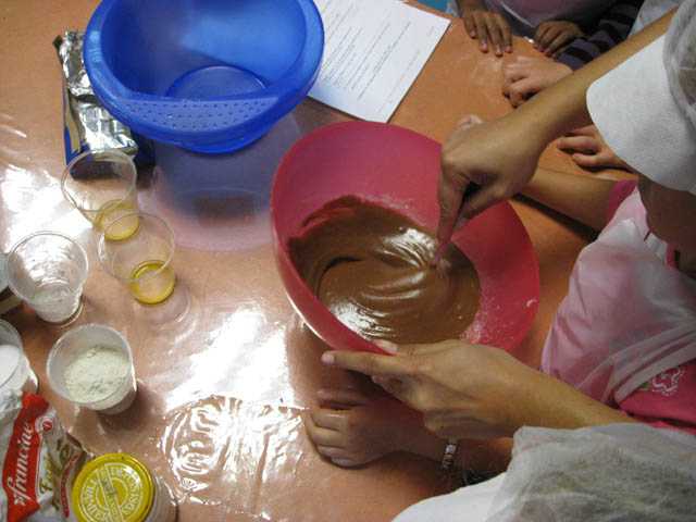 Après l'inoubliable crumble, c'était au tour du groupe des Tilias de passer dans la section Cuisine-Alimentation avec Mélissa et Fatima. C'est un mercredi d'octobre qu'ils ont préparé un bon gâteau au chocolat qu'ils se sont bien sûr empressés de déguster. Mais comme toute les bonnes choses, il faut les consommer avec modération, dicton que Mélissa ne semble pas avoir suivi ! En ce qui concerne Fatima, nous n'avons aucune photo d'elle après cette expérience culinaire, aurait-elle quelque chose à cacher ? Seul les enfants pourront en témoigner ;) Pour rester dans les bonnes choses, les enfants ont assisté dans l'après-midi à la projection du film "Charlie et la Chocolaterie", histoire de ne pas oublier combien le chocolat c'est bon ! Voir la galerie photos avec les enfants (5 photos) |