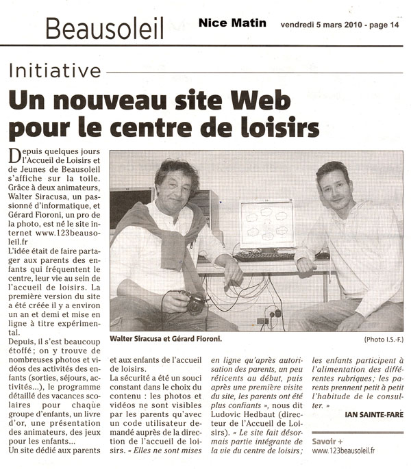 ![]() | Avec l'aide des enfants du périscolaire et le groupe des Artistes du centre de loisirs, le Roi Totoch a enfin pu voir le jour et se promener autour de la Mairie de la ville de Beausoleil dans la joie et la bonne humeur pour célébrer le Carnaval 2010. Si l'envie vous prend vous pouvez lui rendre visite dans le parking de l'école des Cigales en attendant le prochain Carnaval. |