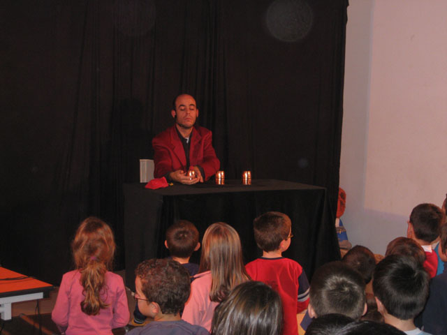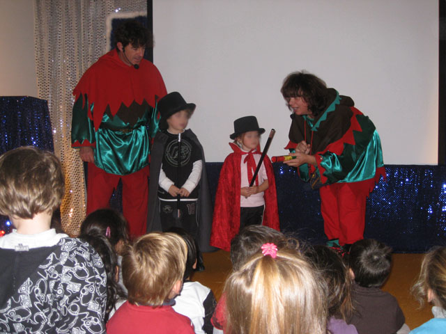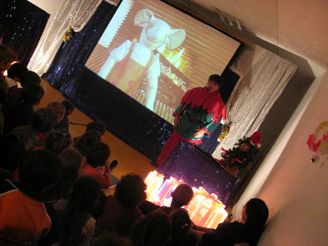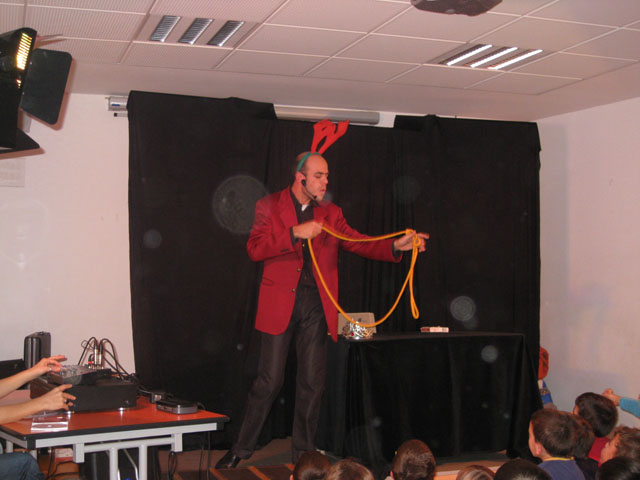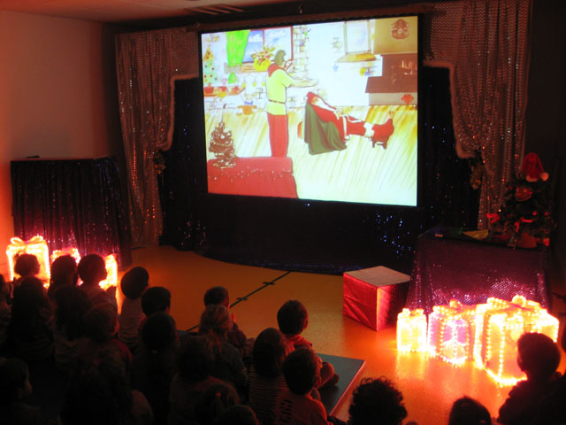 Comme il commence à faire chaud, rafraichissons-nous la mémoire sur le joli thème de Noël que les enfants ont passé pendant les mercredis de décembre. Il y a eu deux grands spectacles professionnels, l'un pour les maternelles où les enfants ont plongé dans un conte féérique parlant du Papa Noël, et un autre grand spectacle de magie pour les élémentaires, présenté par l'étrange PresqueDigitateur. qui nous a tous bluffé avec ses tours de cartes et de cordes.